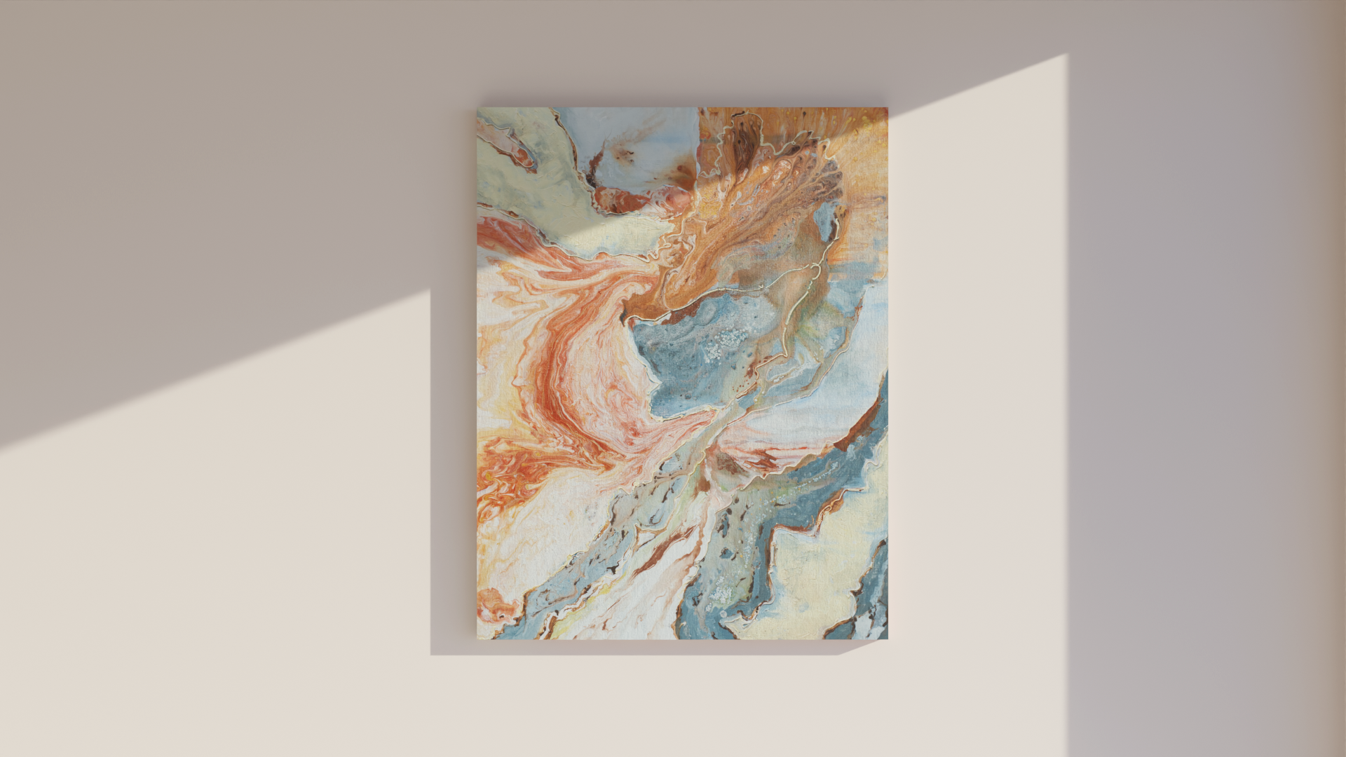 Geïnspireerd door het gouden uur – het moment waarop zonlicht muren streelt en stiltes vult – nodigt dit schilderij uit tot verstilling, tot thuiskomen.